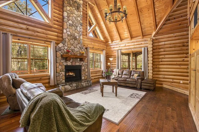 Experience the perfect blend of rustic charm and modern luxury in this stunning 4-bedroom, 3.5-bath custom-built log home, nestled on a picturesque 3.01-acre lot. Step into the awe-inspiring great room, featuring a soaring cathedral ceiling, gleaming hardwood floors, a floor-to-ceiling stone fireplace, and a built-in entertainment center.